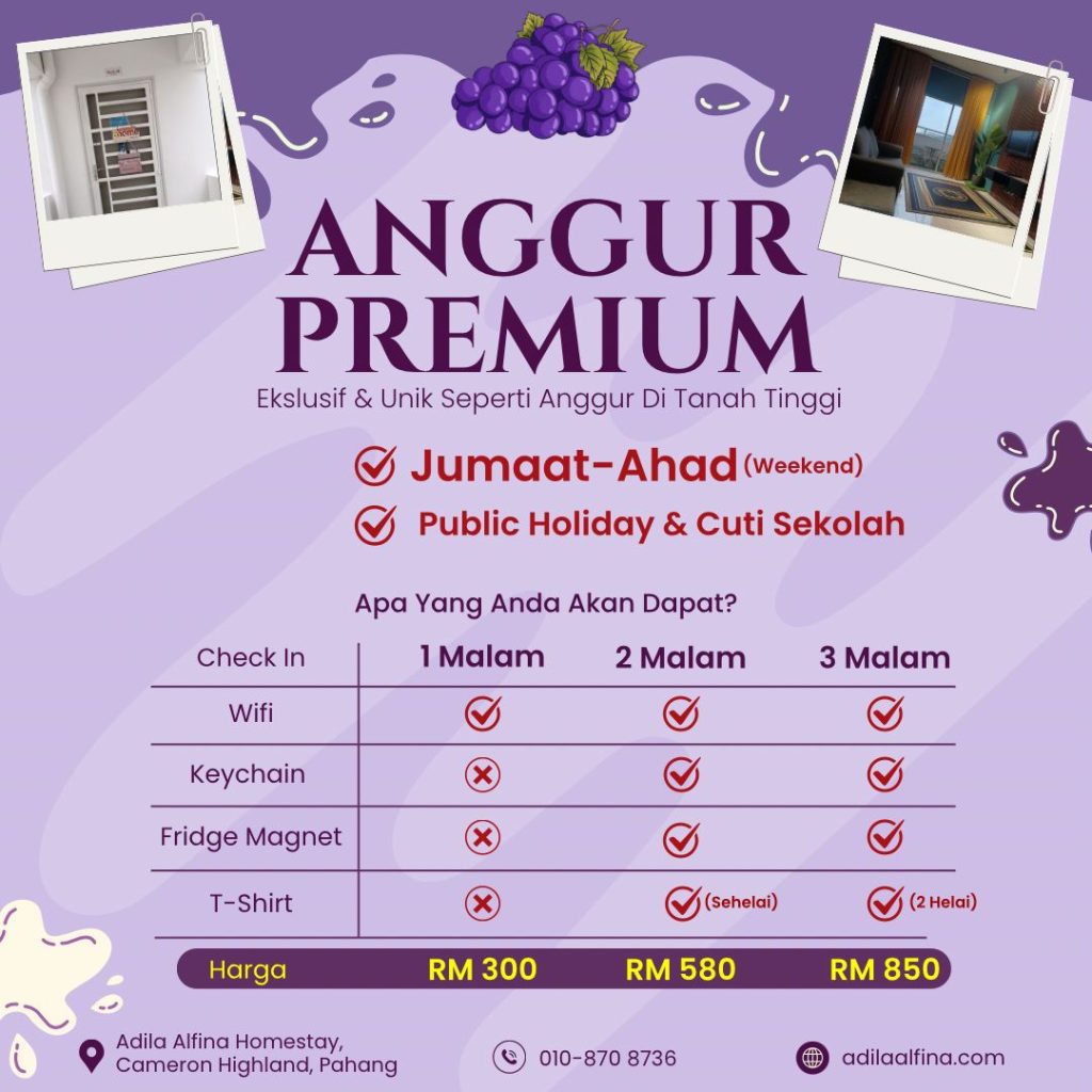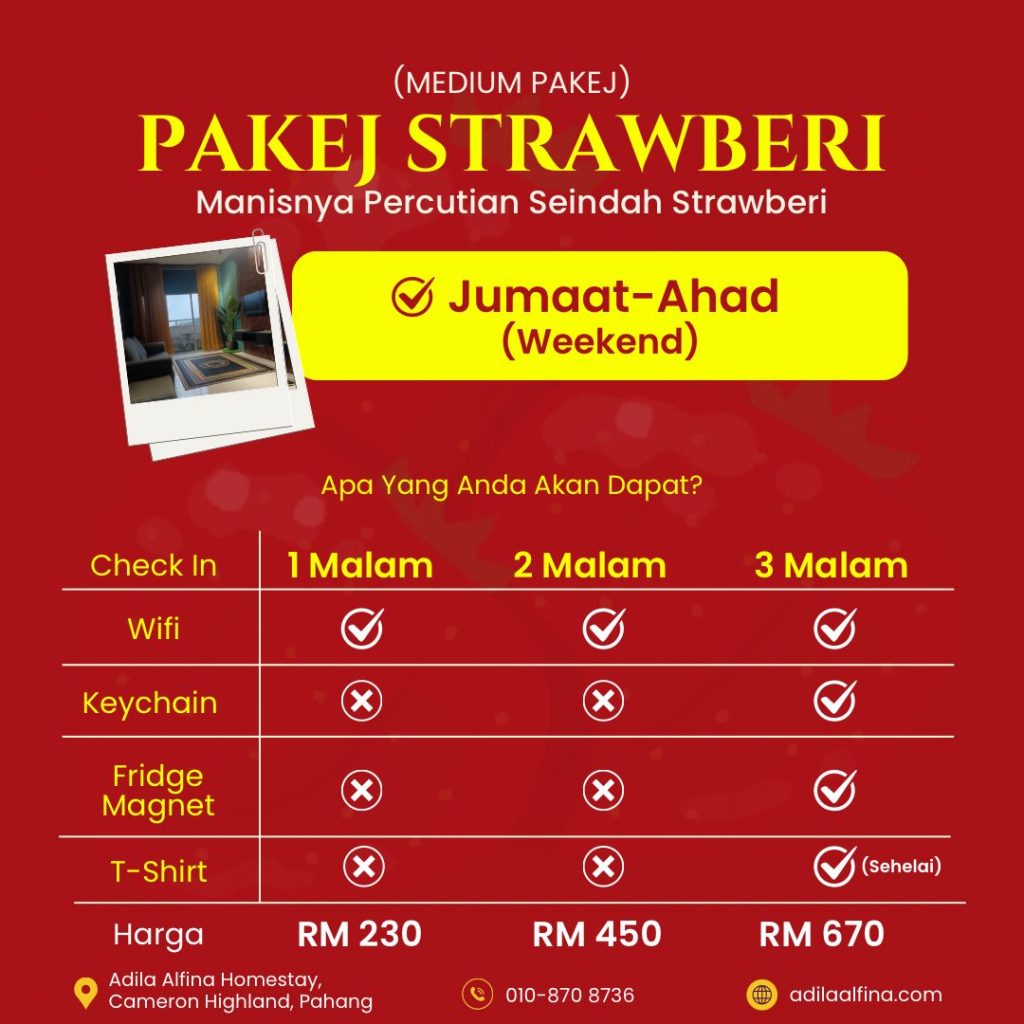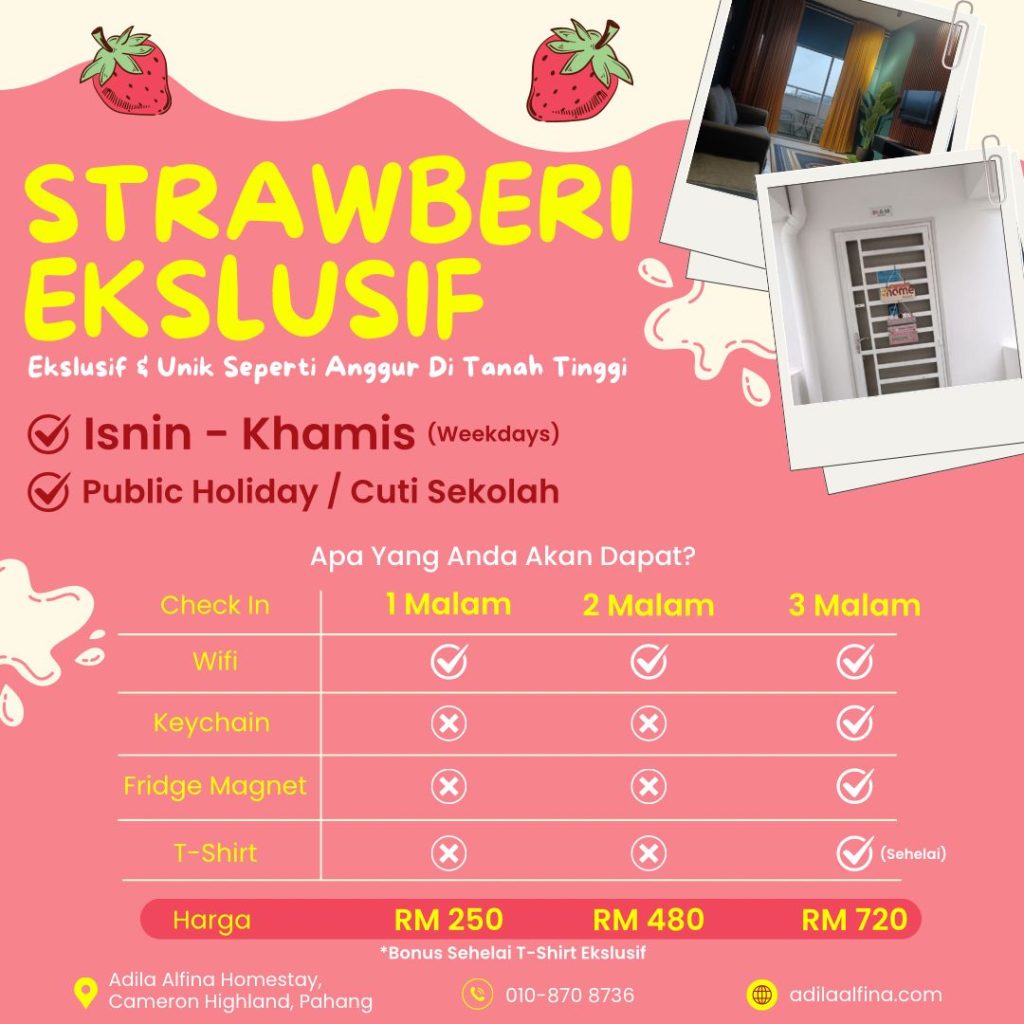 📍Lokasi strategik, dekat dengan tarikan utama seperti ladang teh, pasar pagi, dan kebun strawberi.